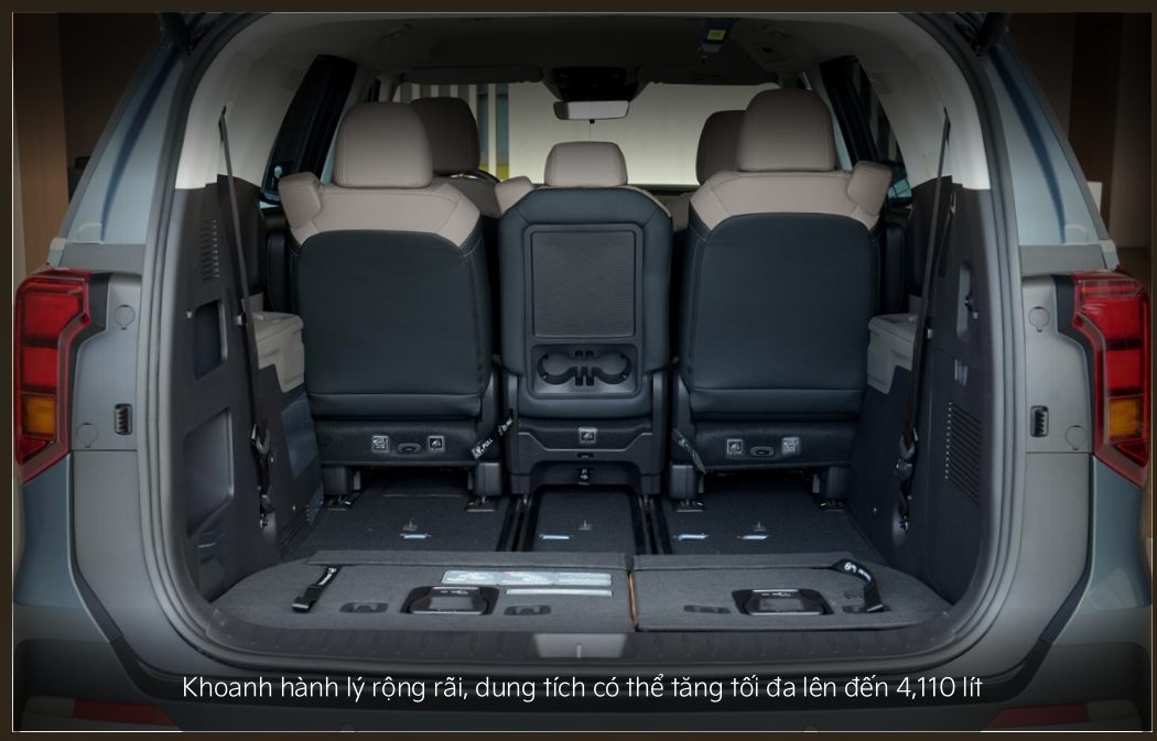 Bên cạnh đó, hàng ghế 3 trên KIA Carnival Hybrid 2025 được nhiều khách hàng đánh giá cao khi có thể điều chỉnh góc ngả lưng lên đến 120 độ hoặc gập phẳng giúp gia tăng không gian chứa đồ. Hàng ghế này có khoảng để chân rộng và khoảng sáng trần lớn, tạo không gian ngồi thông thoáng, thoải mái.