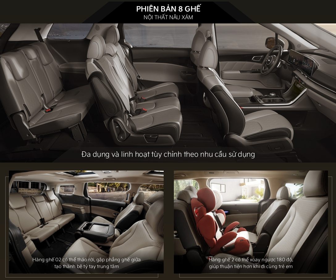 Khách hàng có thể sở hữu KIA Carnival Hybrid với các phiên bản có hàng ghế 2 với 2 tùy chọn riêng biệt.