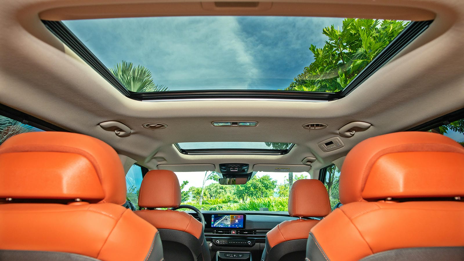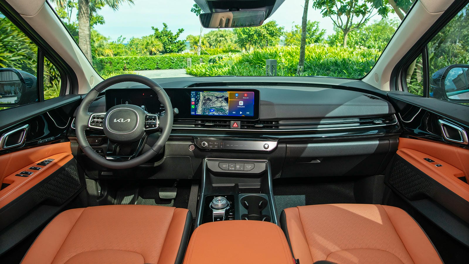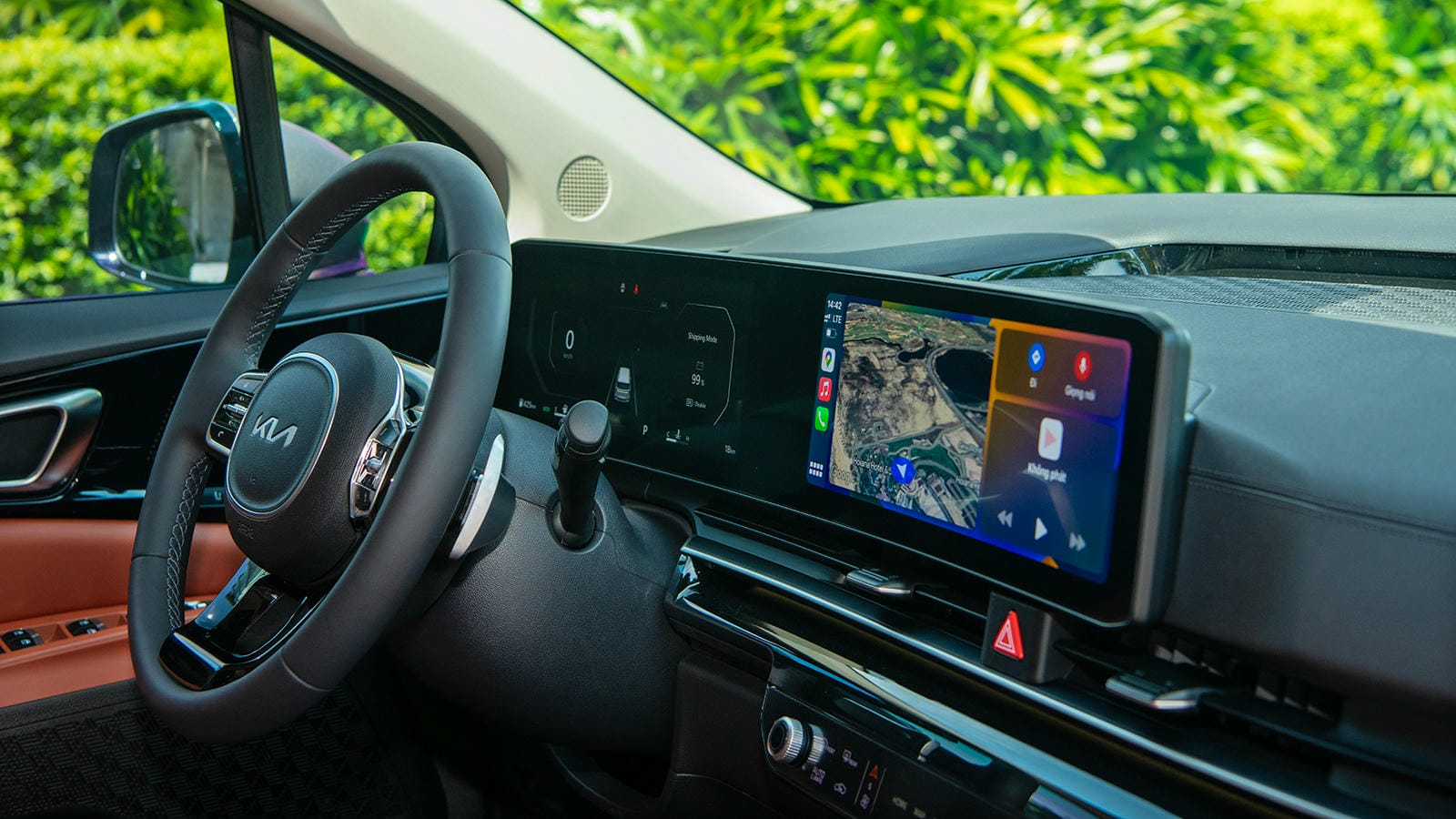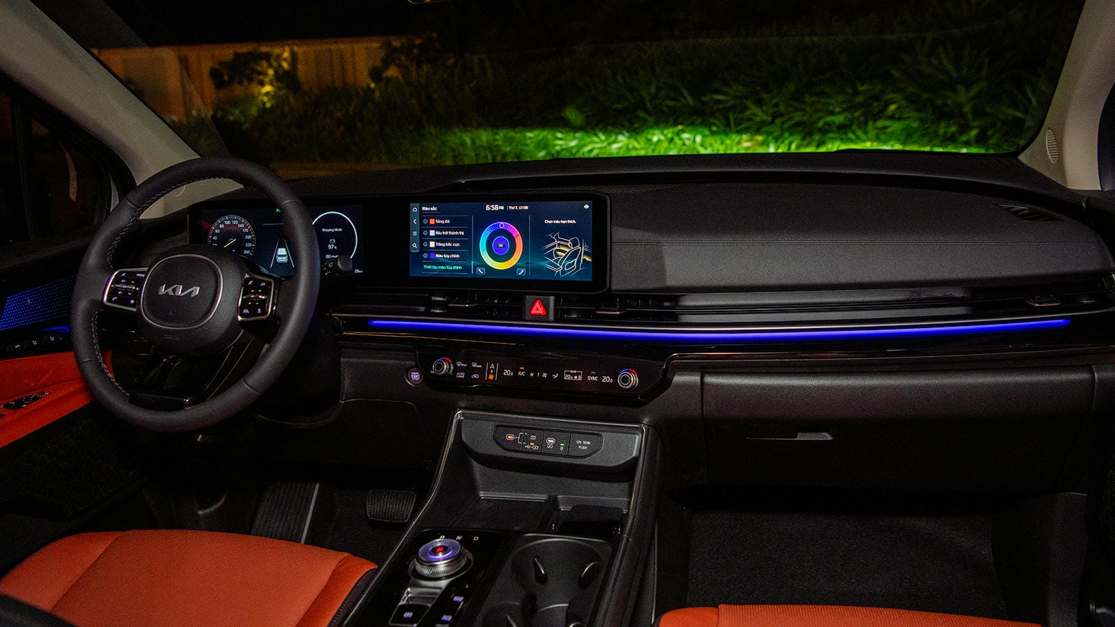 Thiết kế khoang lái mang đậm tính công nghệ tương lai với màn hình cong Panoramic kết hợp giữa cụm đồng hồ tốc độ dạng Full-LCD 12.3’’ và màn hình giải trí đa thông tin AVN 12.3’’ có độ phân giải full HD, kết nối Apple Carplay và Android Auto không dây; đồng thời có thể cài đặt và điều khiển các chức năng hệ thống trên xe thông qua màn hình cảm ứng AVN thay vì điều chỉnh bằng nút bấm trên vô lăng như mẫu xe tiền nhiệm.