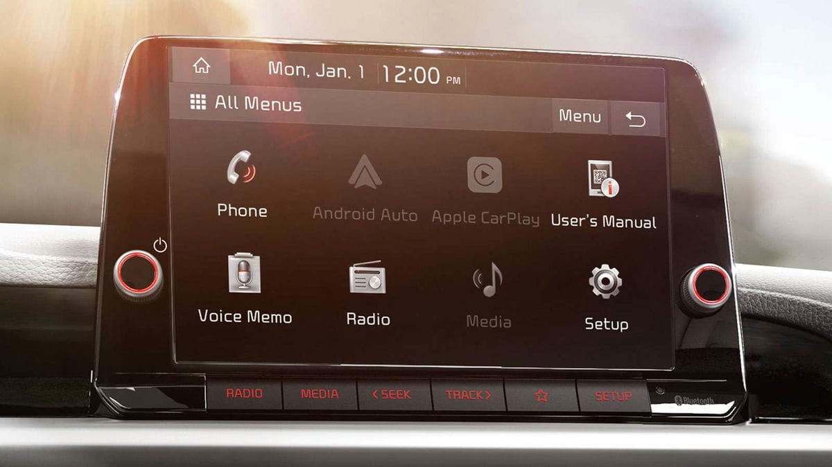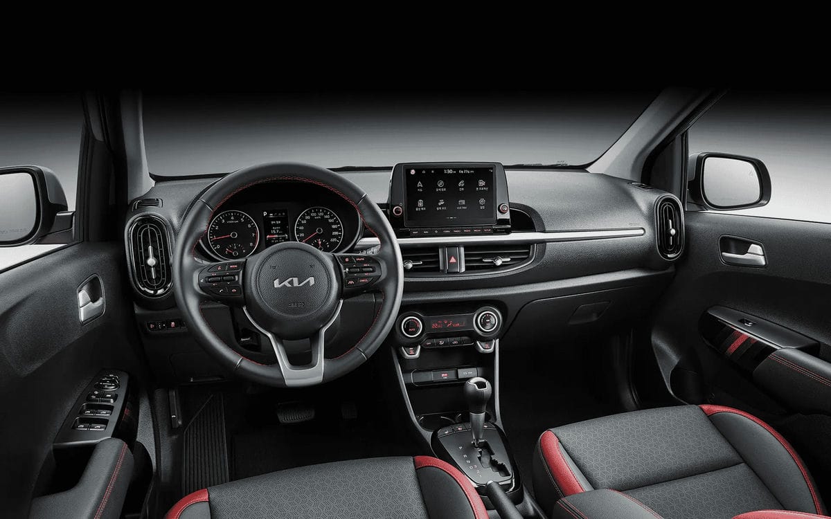 Điểm nhấn đáng chú ý trên Kia Morning là màn hình cảm ứng 8 inch đặt nổi, thiết kế ấn tượng nhất trong phân khúc hạng A. Các trang bị khác trên xe có thể kể đến như hệ thống âm thanh 6 loa, vô-lăng bọc da, đồng hồ đa thông tin phía sau kết hợp màn hình LCD 4,2 inch,...